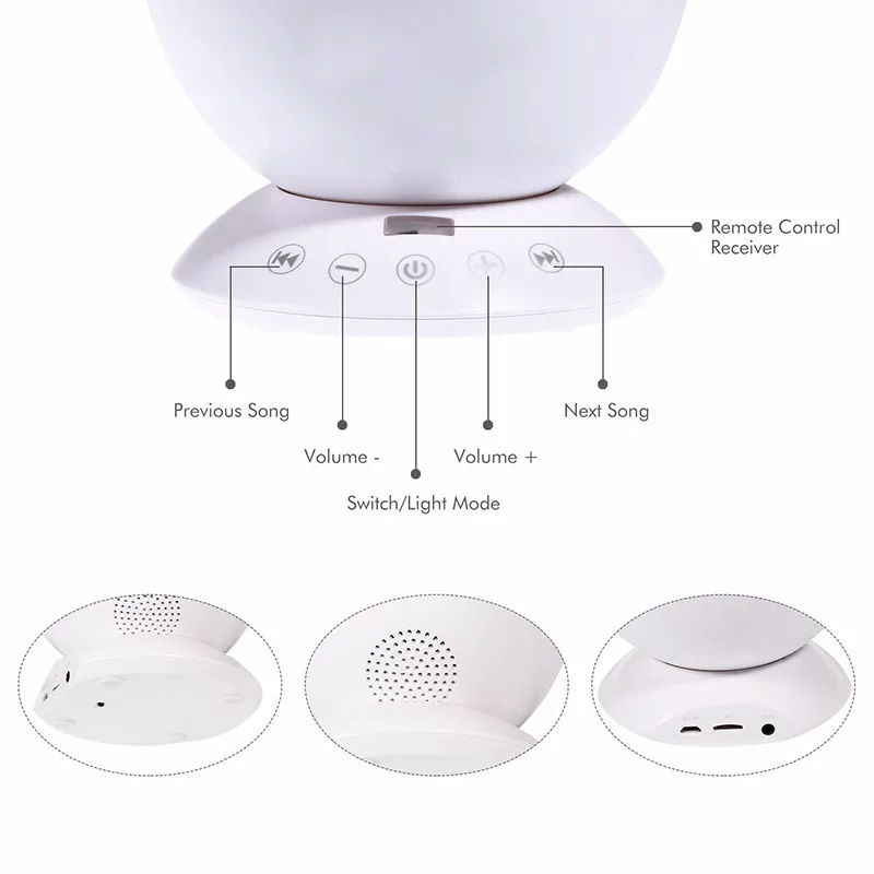 This Hypnosis Ocean Wave Projector Nightlight Come With Remote Control Function, It Built in 4 Hypnosis Music and TF Card Music Play Function . Also Can Play Music By Connect External Audio Source, Make the User Enjoy the Beautiful Surroundings and the Wonderful Music at the same time to Relax Body and Soul.